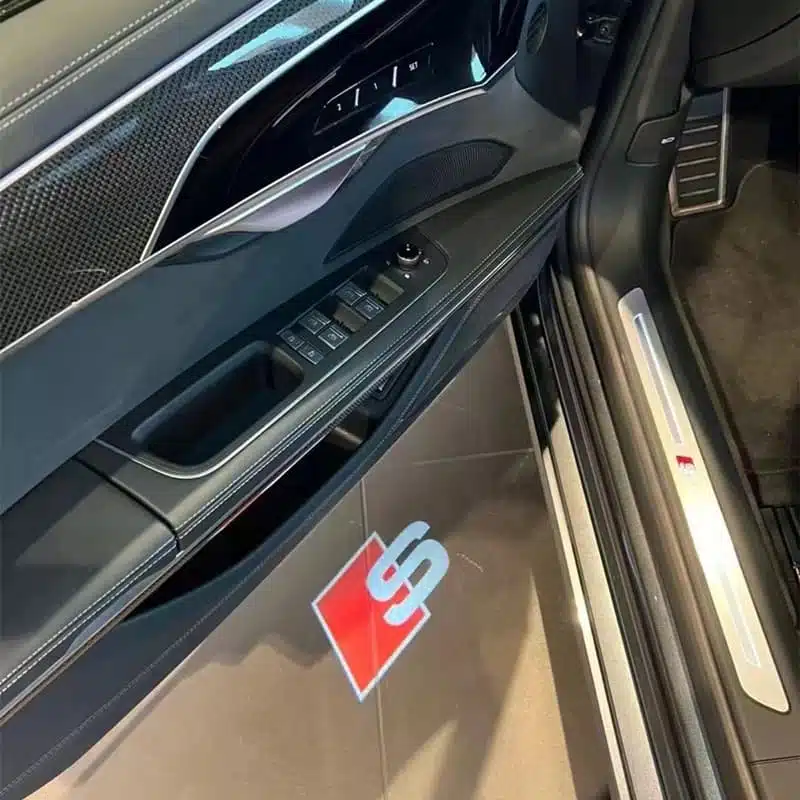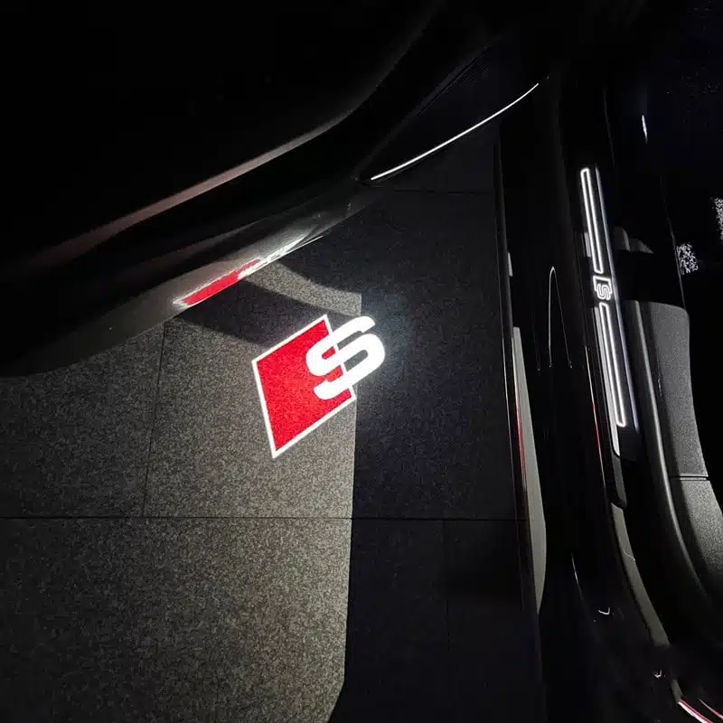 ๐ Enhance Your Car’s Welcome – Elevate your car’s elegance with Audi S puddle Lights. Projected logo lights enhance safety when exiting the vehicle. When the car door opens, a vibrant Audi S logoย illuminates the ground and turns off upon closure.