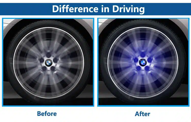 Magnetic levitation technology – the LED Floating Center Cap for BMW can remain vertical at a speed of 135 kilometers per hour. It uses cutting magnetic fields to generate electricity, no battery is required, and no power connection is required. When the vehicle is traveling at 25 kilometers per hour, the hub cover automatically generates electricity and emits light, which is energy-saving and efficient. The vehicle light warning can effectively reduce the collision of parallel vehicles (the effect is obvious at night), making the high-speed car more personalized.