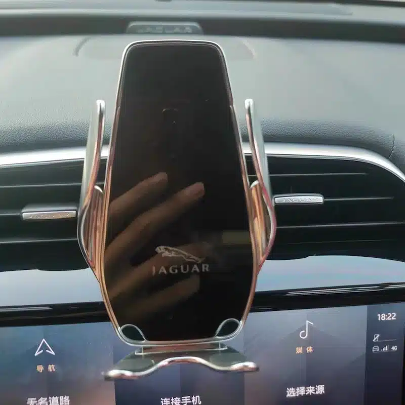 2. Infrared Sensing: Our Jaguar wireless charger car holder adopts the latest infrared sensing technology. When the phone is close to the holder, the holder will automatically expand its arms and then retract to clamp the phone. Touch the fingerprint sensing area on the back of the phone holder to remove the phone.
