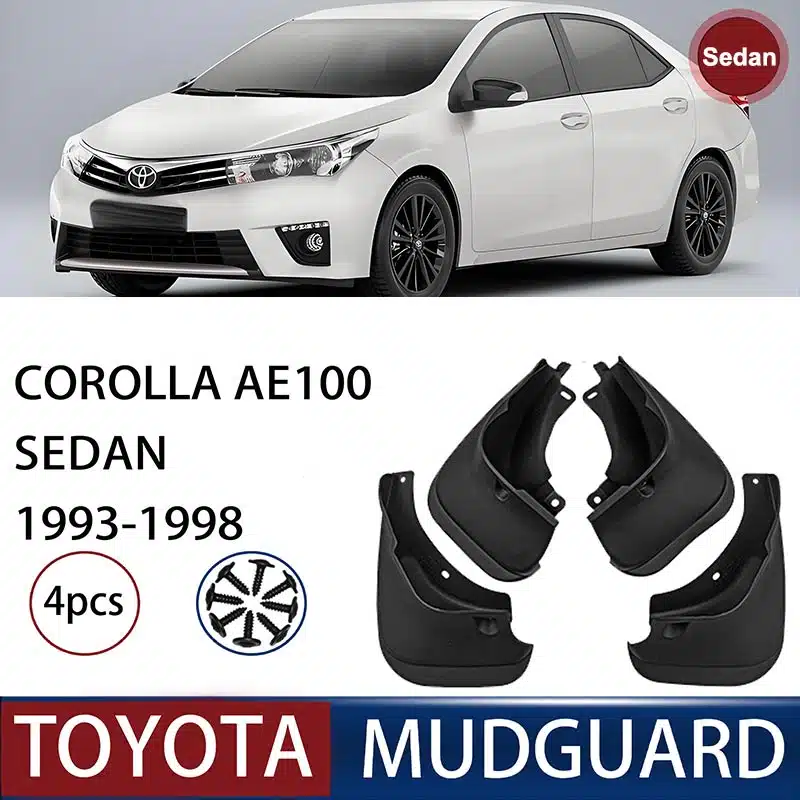 1. Compatibility: These Mud Flaps are specially designed and fit for Toyota Corolla AE100 Sedan (1993-1998).ย