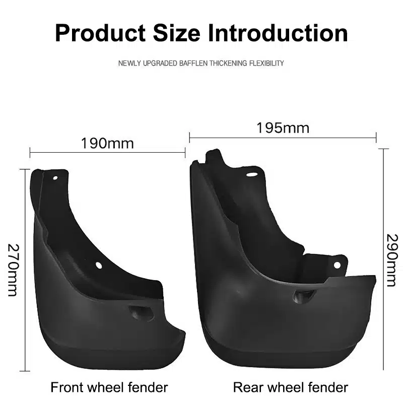 5. Deluxe Molded Splash Guards give extra protection to the lower part of your car. They also add a stylish touch. Made from durable PP soft plastic, they are firm and can be painted. Each guard is shaped to fit your car perfectly.