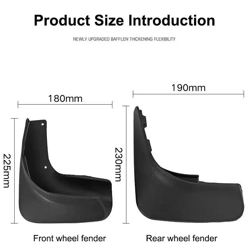 The mud flaps are made of strong PP material which does not break easily and works well in all weather. Also, the edges are smooth so it won’t scratch your car’s paint.