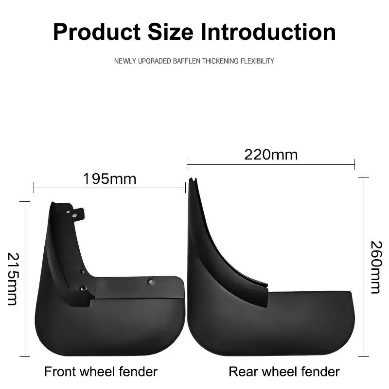 The mud flaps are made of strong PP material which does not break easily and works well in all weather. Also, the edges are smooth so it won’t scratch your car’s paint.